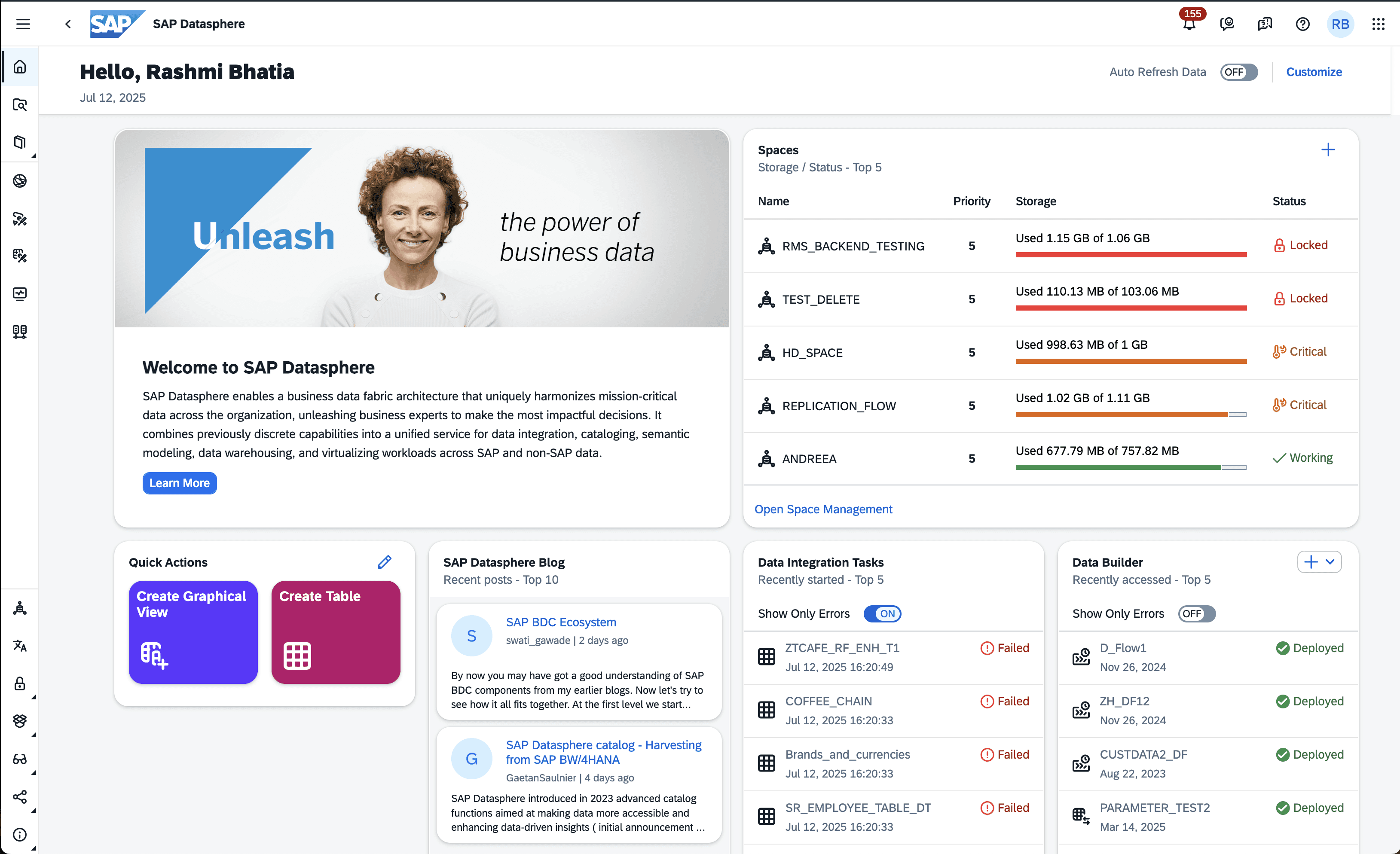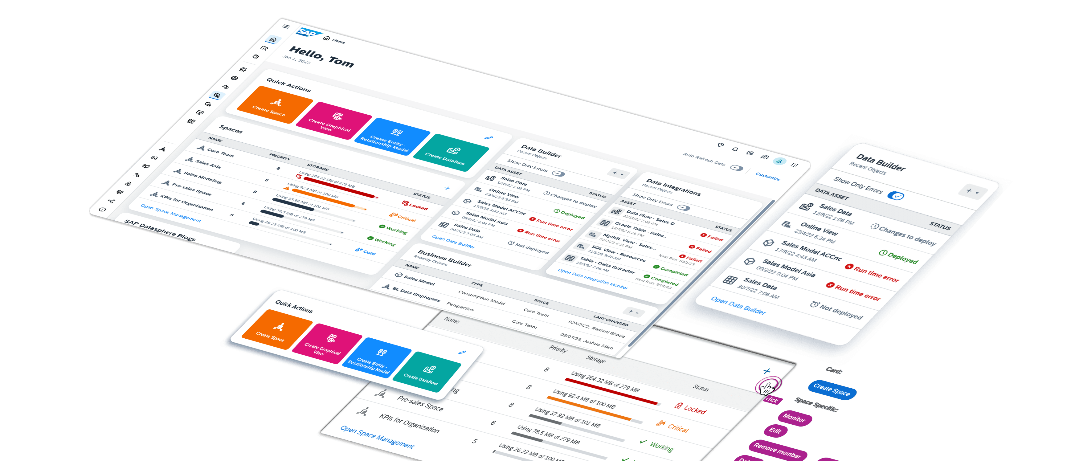 The Datasphere Home is oriented around the following three core personas. The content of the homepage should always be relevant to the different tasks of these users. The information required is divided into baseline information and role-specific information.