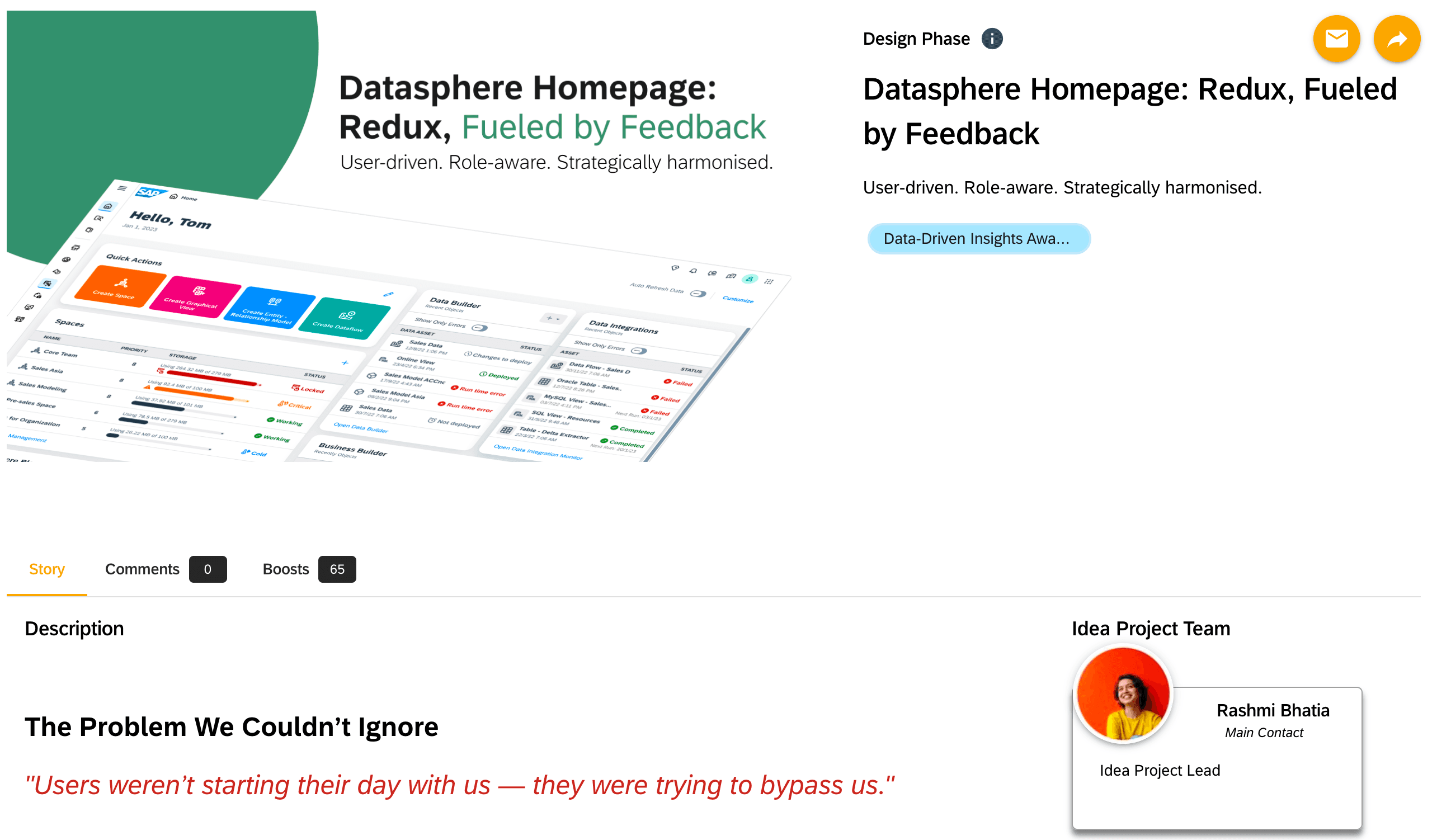 This project was seen as a perfect example of harmonised working model between UX, Research team, UA, PM and Development team and was recommended by the Product Lead to be nominated for SAP Data-Driven Insights Awards, which later successfully received a runner-up position.